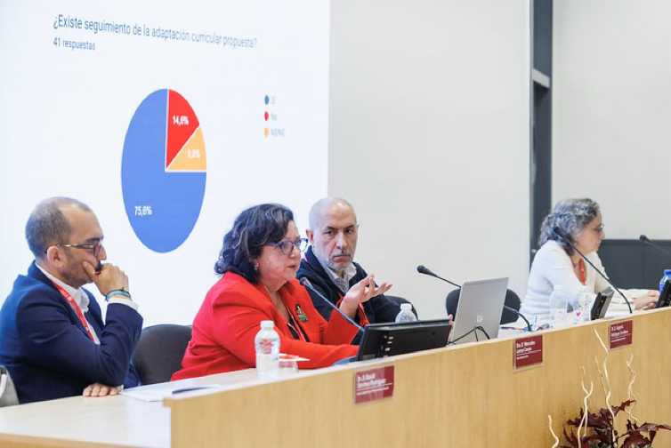 Dentro del programa previsto se desarrolló una Mesa Redonda sobre «Adaptaciones curriculares para el estudiantado con discapacidad: análisis y reflexiones desde las Defensorías Universitarias», en la que la Defensora de la Universidad de Sevilla y Vocal de Diversidad, Inclusión y Estudiantado de la CEDU, Mª de las Mercedes Lomas Campos presentó la ponencia titulada «ADAPTACIONES CURRICULARES PARA LA INCLUSIÓN DE ESTUDIANTES CON DISCAPACIDAD: Estudio CEDU» con los resultados de la encuesta realizada a las Defensorías Estatales sobre la problemática respecto de las adaptaciones razonables como derecho marcado en la LOSU para el desempeño de estudiantes con necesidades especiales por motivo de discapacidad.